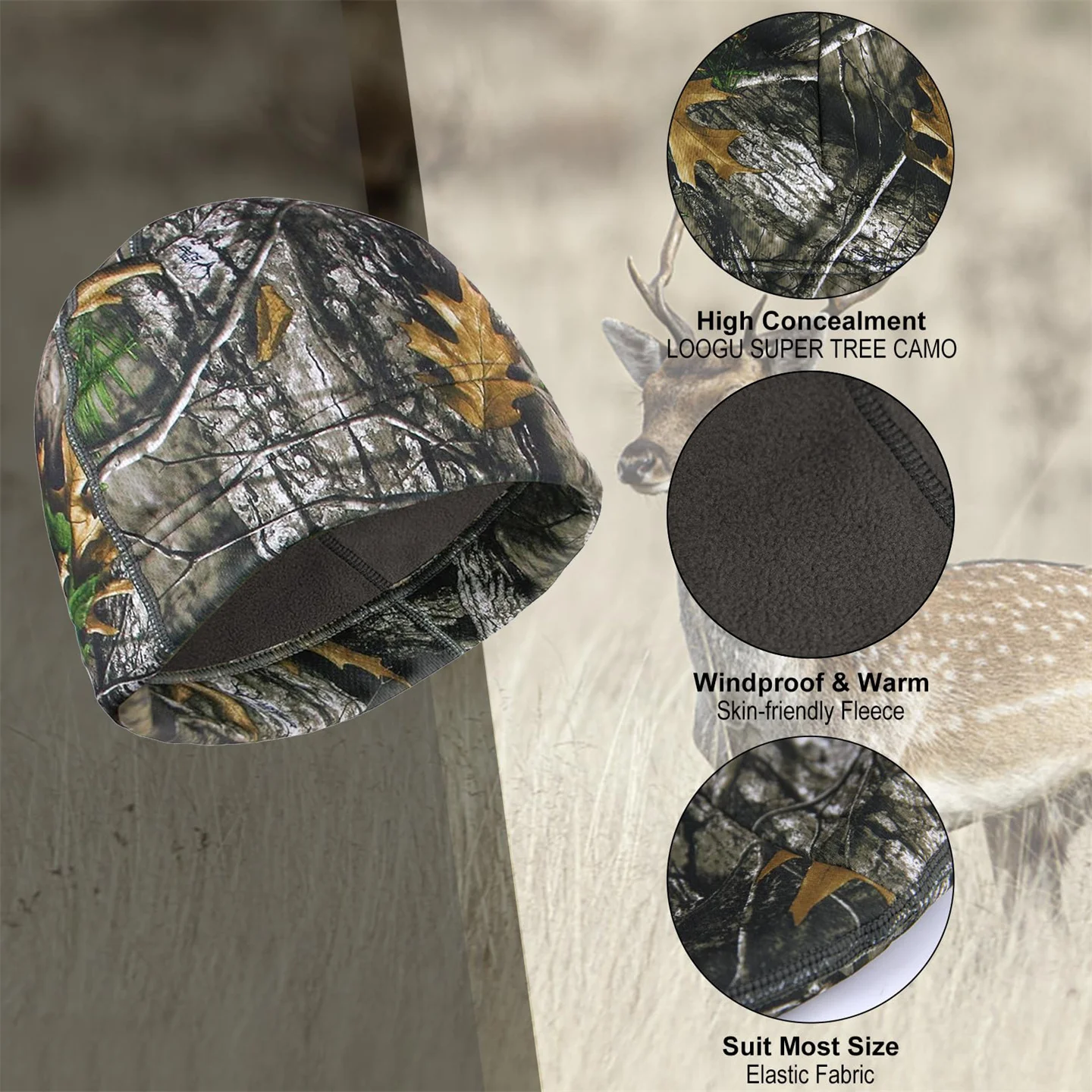 Big Tree Leaf Camouflage Polar Fleece Hunting Hat For Men Women Outdoor Windproof Mountaineering Hiking Cycling Thermal Head Cap