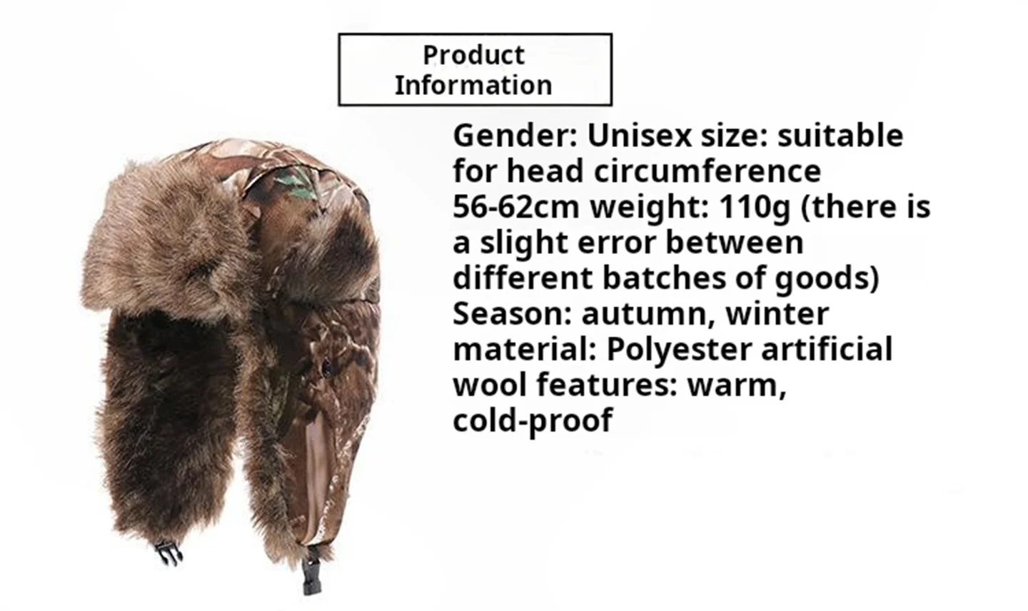 Winter Camouflage Hunting Hat For Outdoor Cycling Hiking Skiing Mountaineering Fishing Windproof Thermal Ear Protection Hat