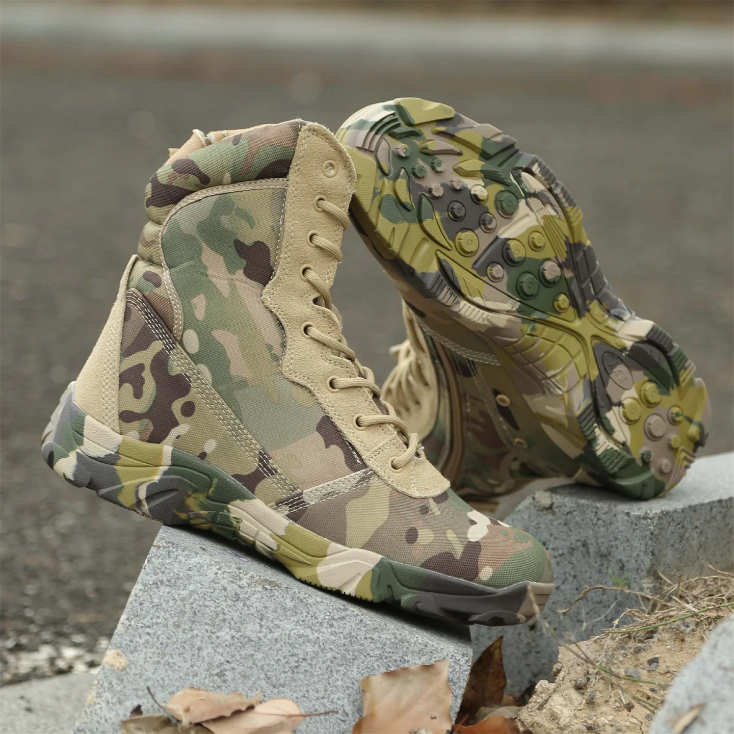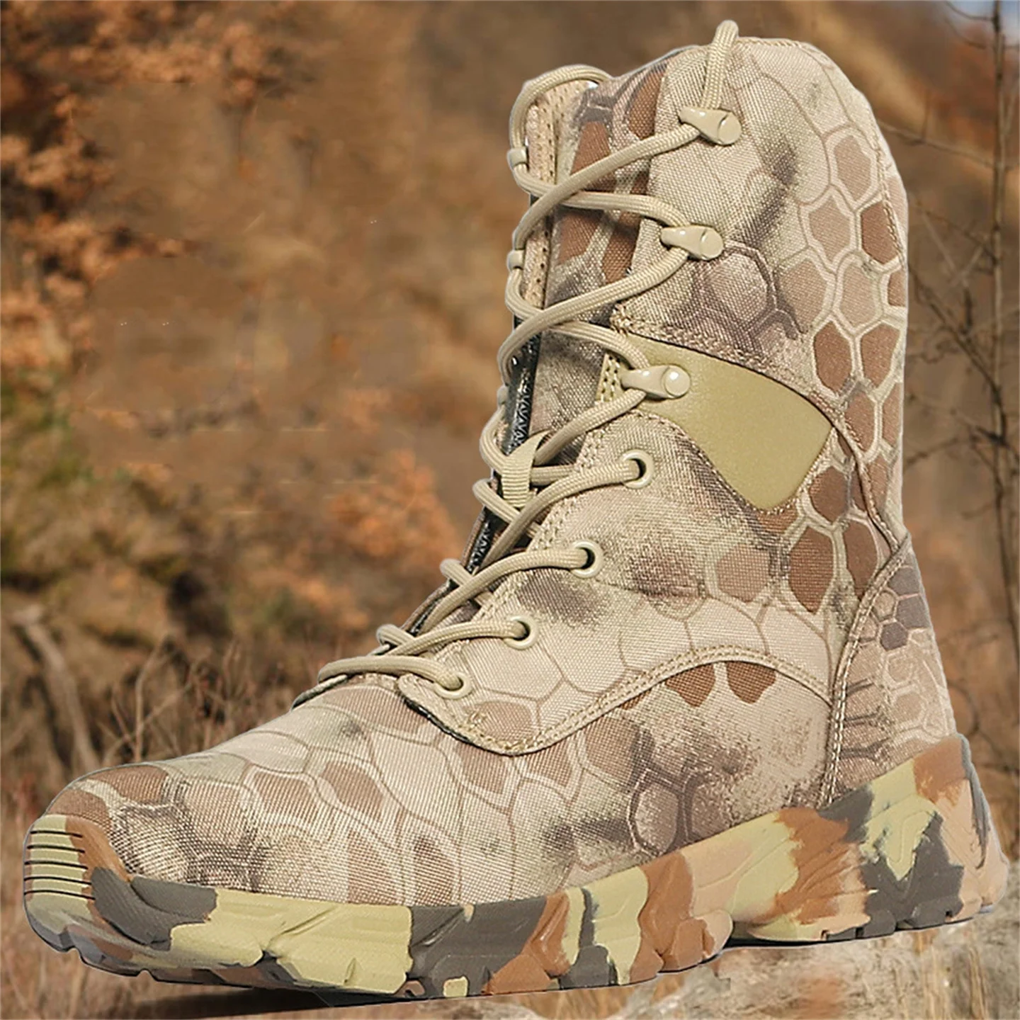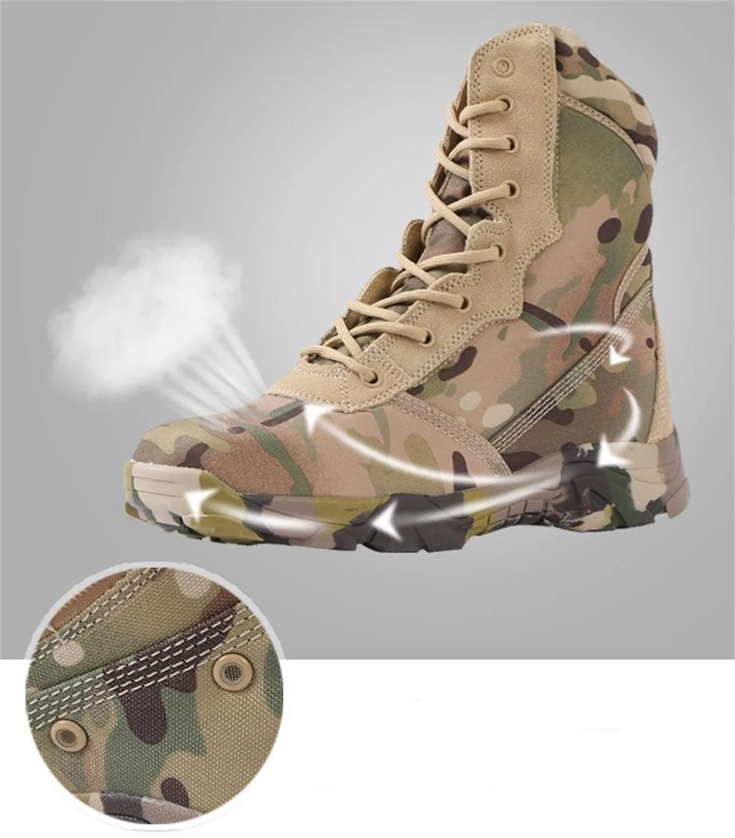 Hunting Boots Men's High Top Camouflage Breathable Tactical Shoes Outdoor Hiking Wear-Resistant Waterproof Mountaineering Boots