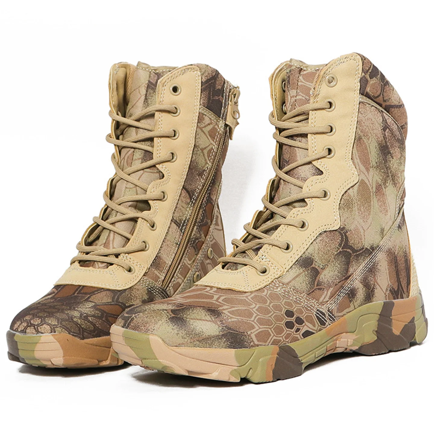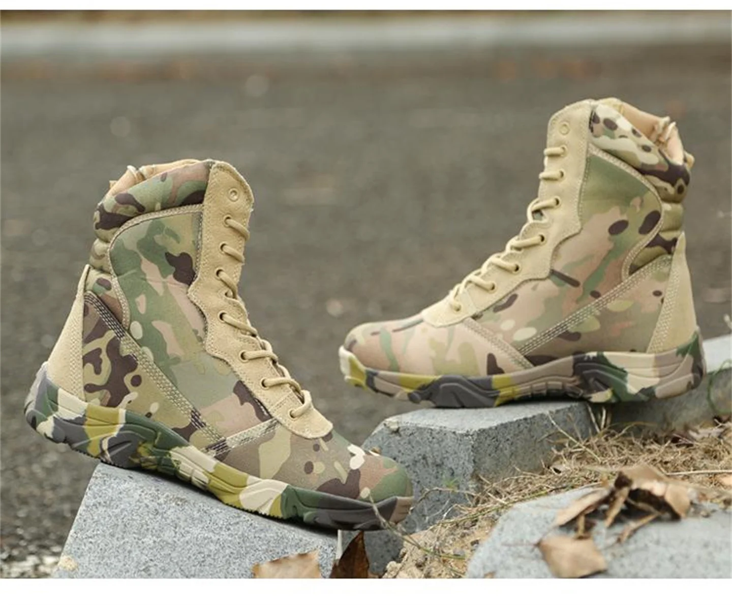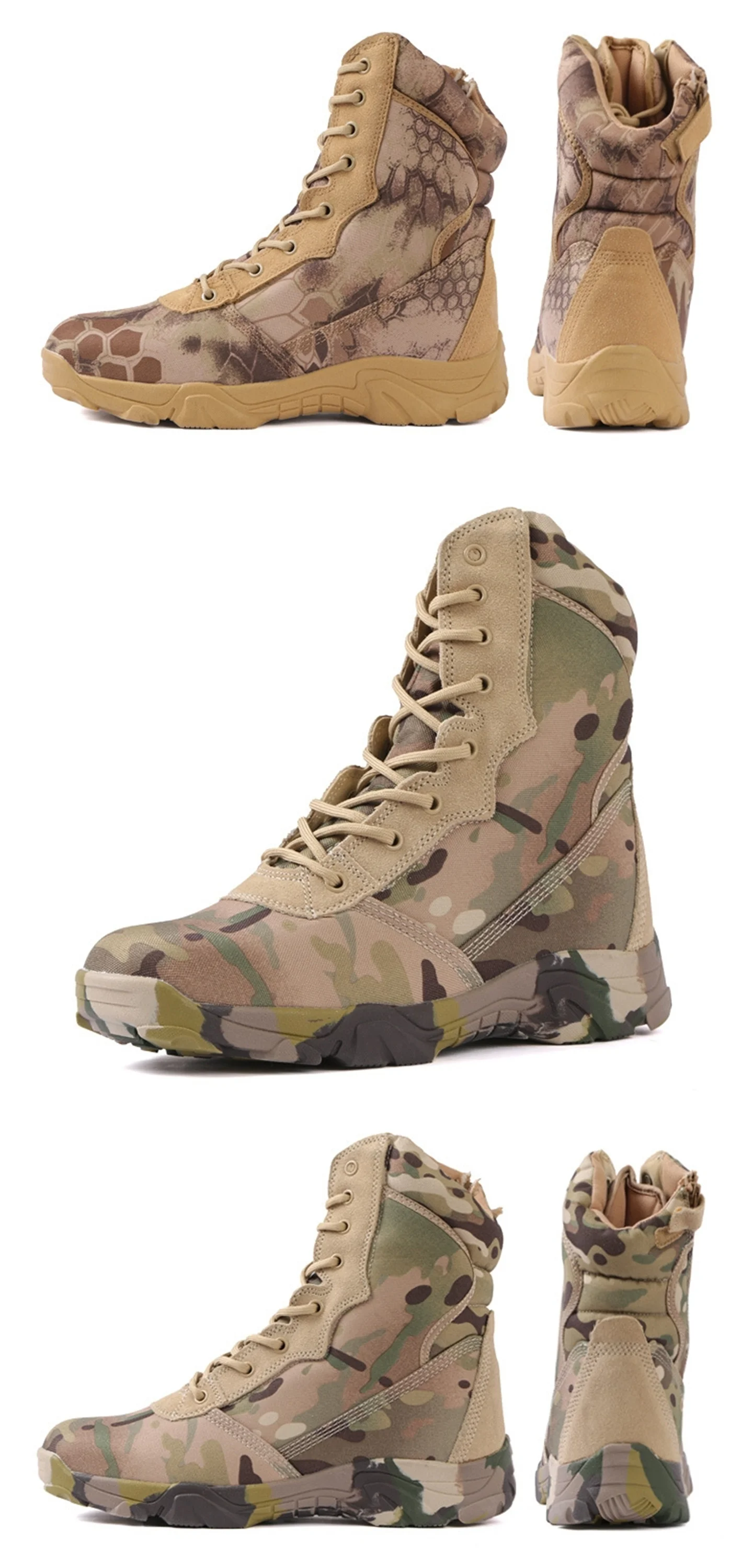 Hunting Boots Men's High Top Camouflage Breathable Tactical Shoes Outdoor Hiking Wear-Resistant Waterproof Mountaineering Boots