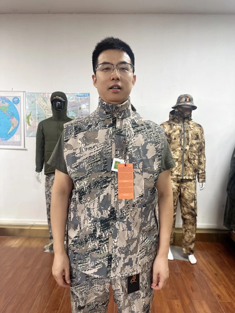 *Sleeve Fit Note: Vinson's true sleeve length is 82 cm (measured from the back collar midpoint to the cuff). When wearing the our hunting jackets (Size L), the sleeves were observed to be slightly longer than his arm length.